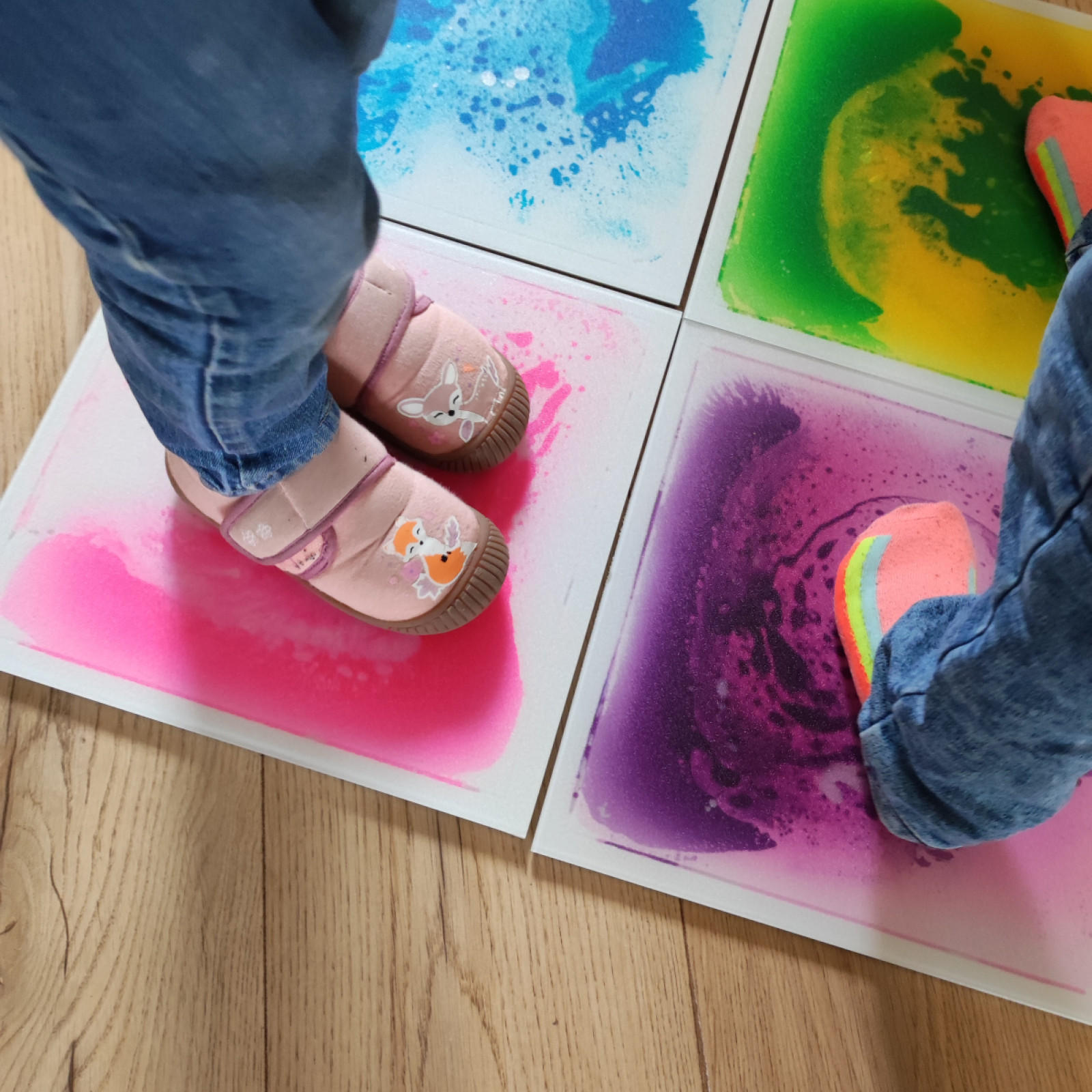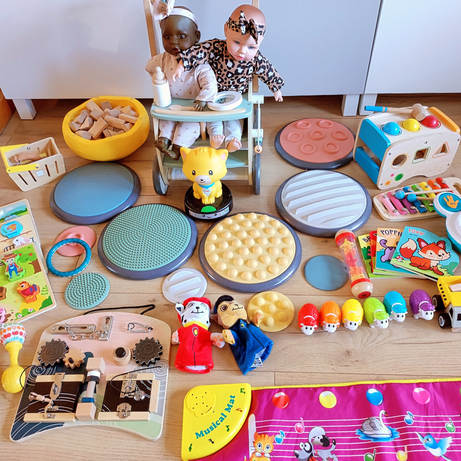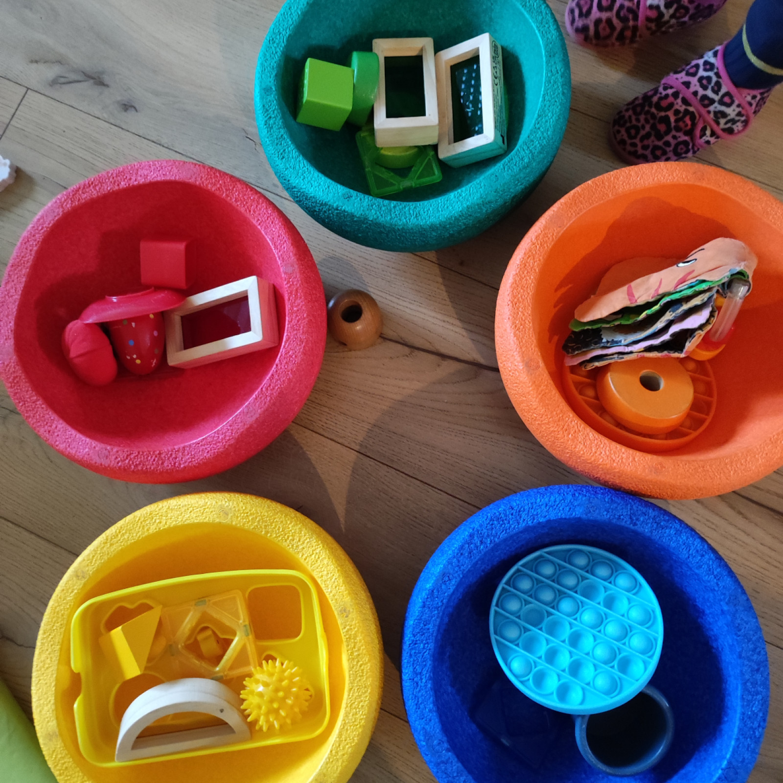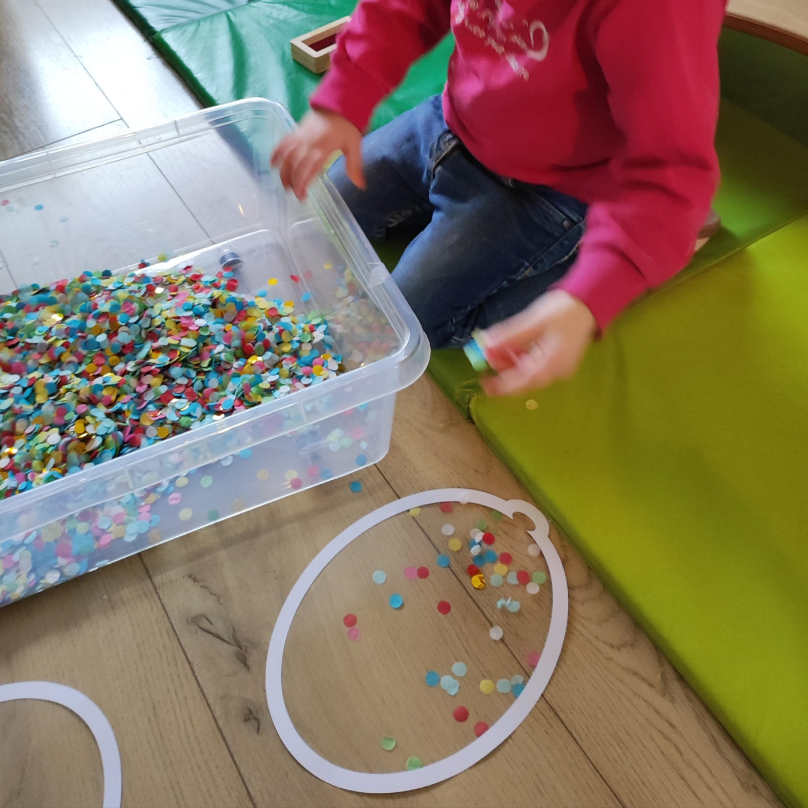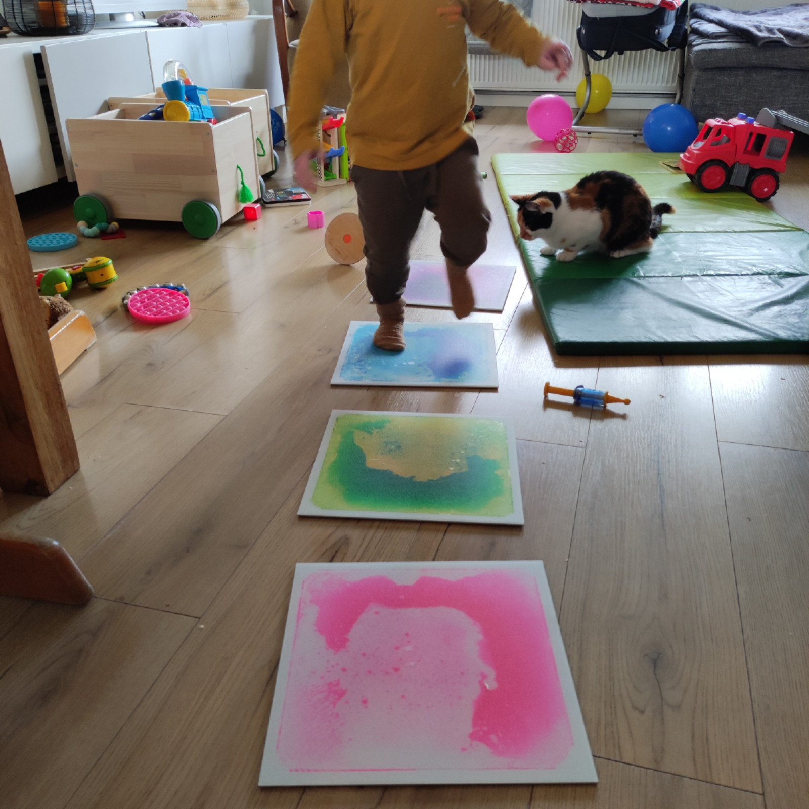 Und dann habe ich noch von das 'oliebollengeld' faszinierende Matten gekauft. Es ist ganz schwer zu erklären was genau es ist aber die Kinder sind begeistert. Es ist toll wenn ich wieder was gefunden habe, was für alle Kinder geeignet ist.