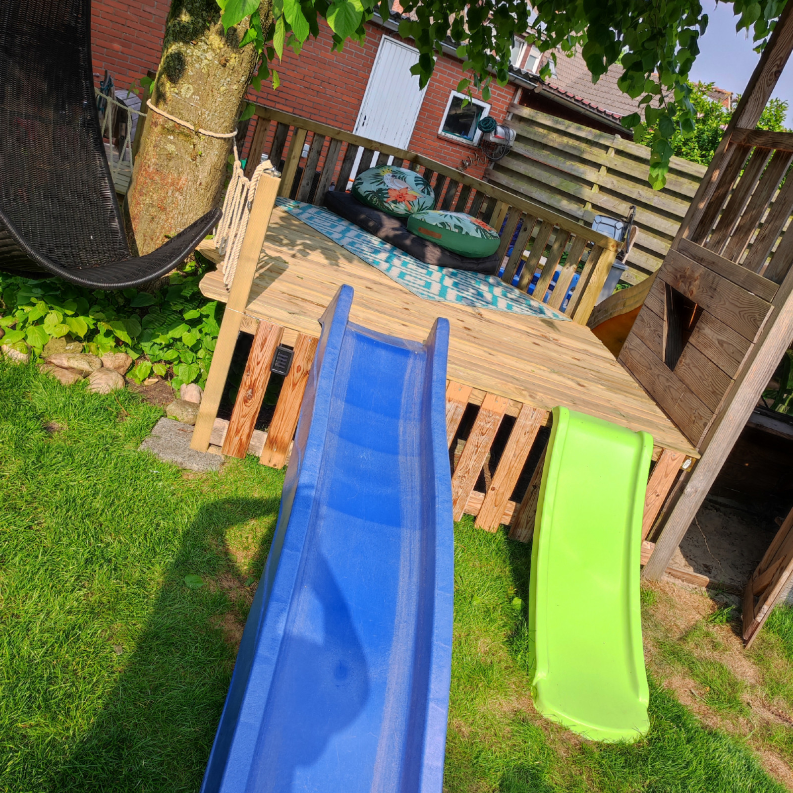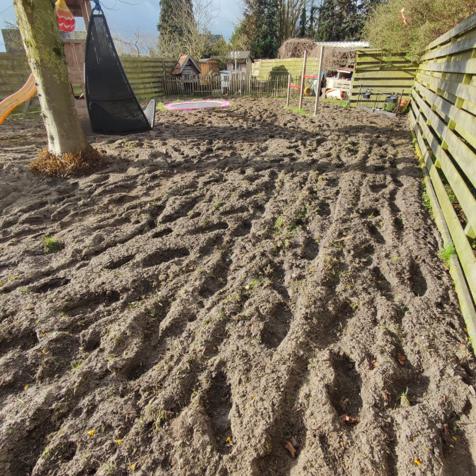 Wir brauchen neue Rasen. Aber dafür muss es erst schlimmer werden. Wir haben jetzt nur schwarzes Sand. Also können wir leider zurzeit draußen nicht auf den raden spielen.