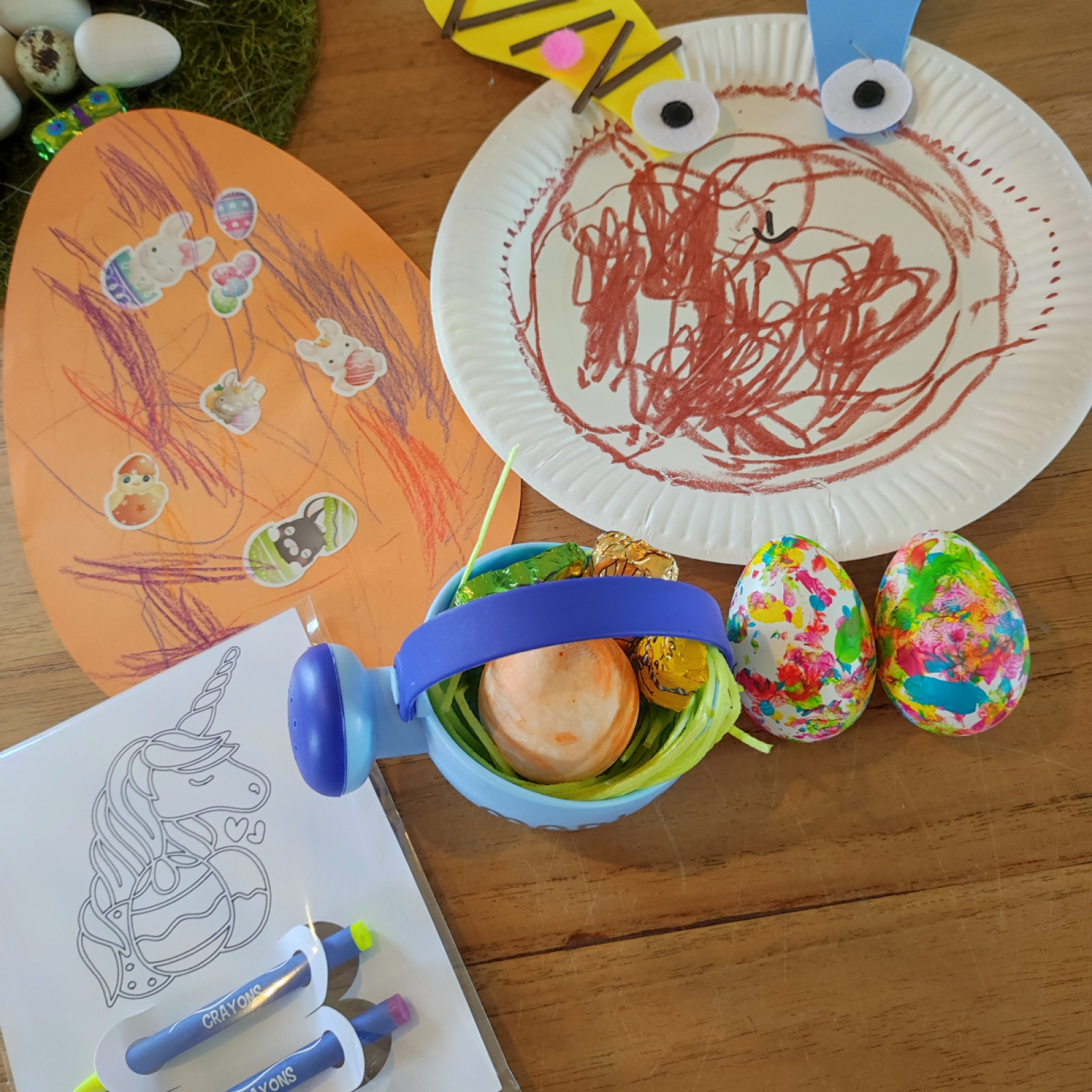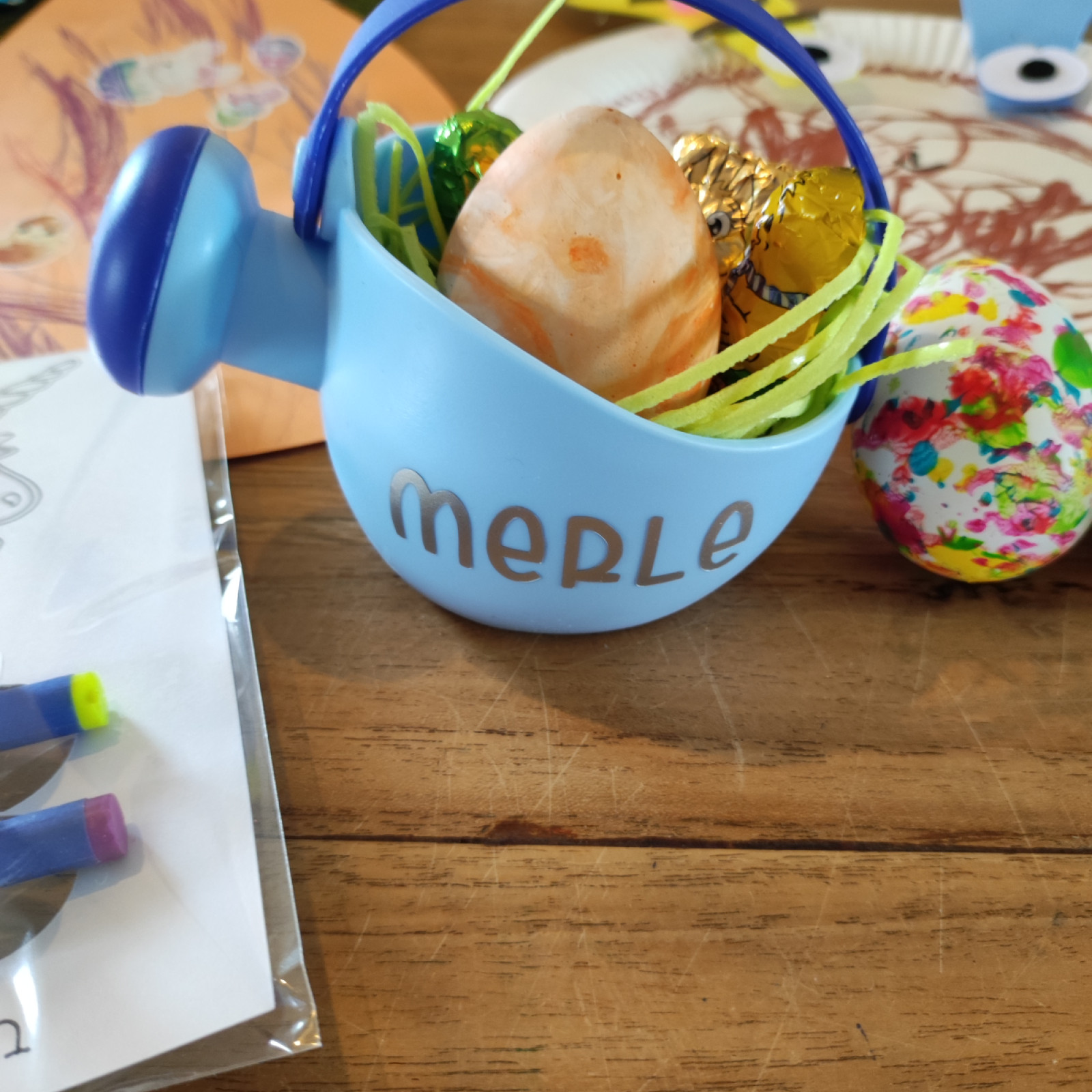 Die Osterhase war schon bei mir und hat ein kleines Geschenk für die Kinder mitgebracht. Auch das was die Kinder selbst gebastelt haben, haben die mit nach Hause bekommen.