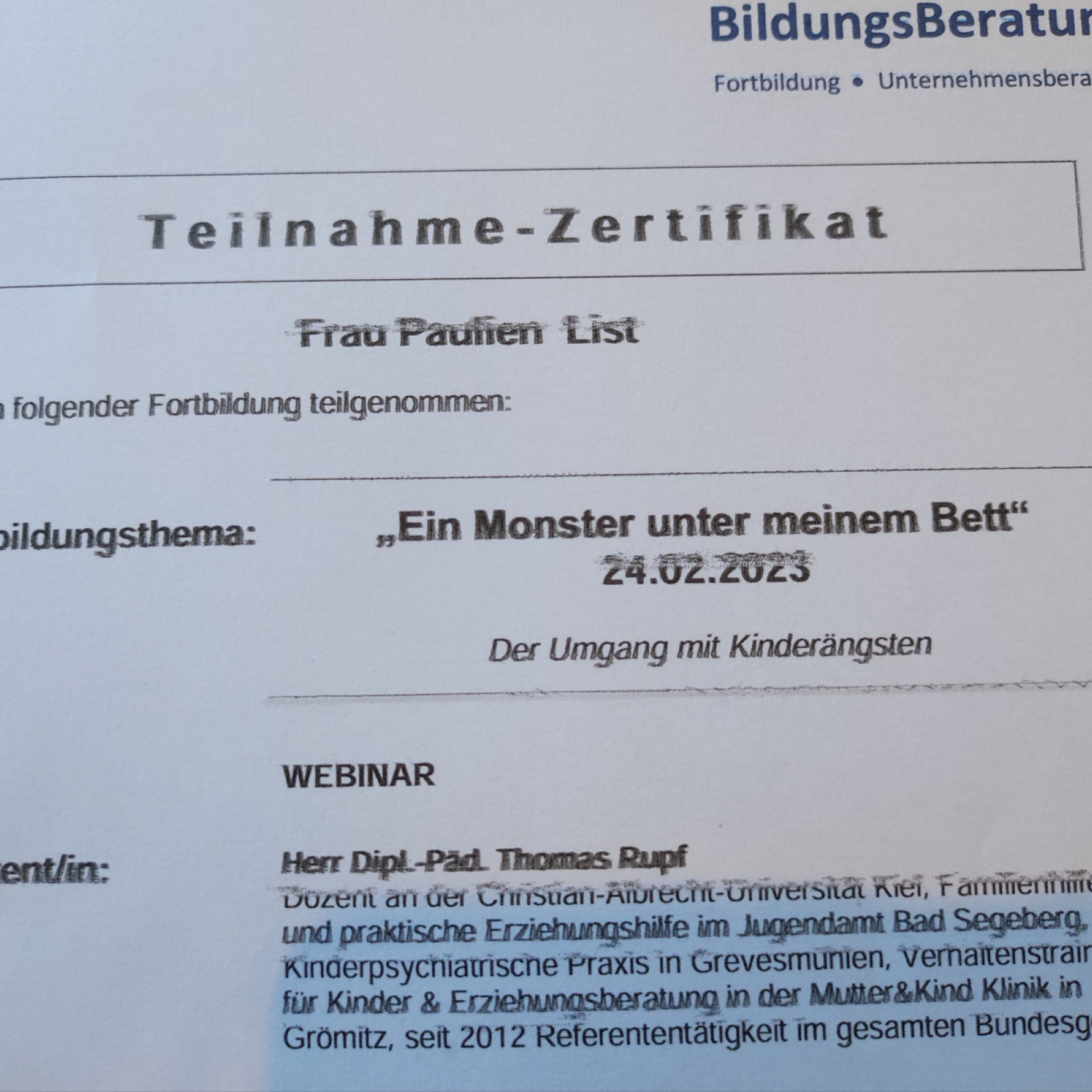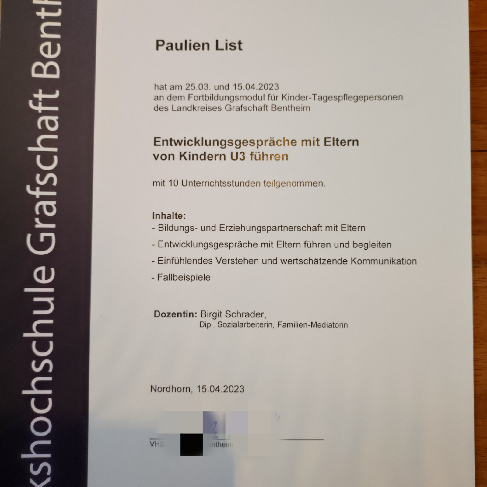 Ende Januar müssten wir uns von ein Tageskind verabschieden, sie ist in den Kindergarten gewechselt.