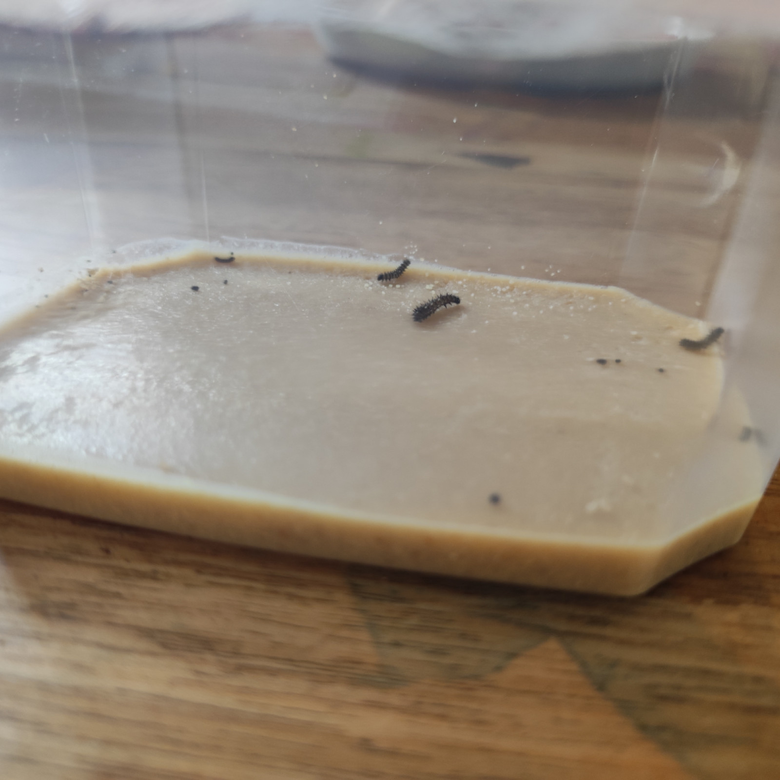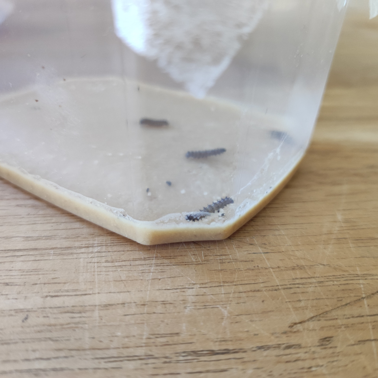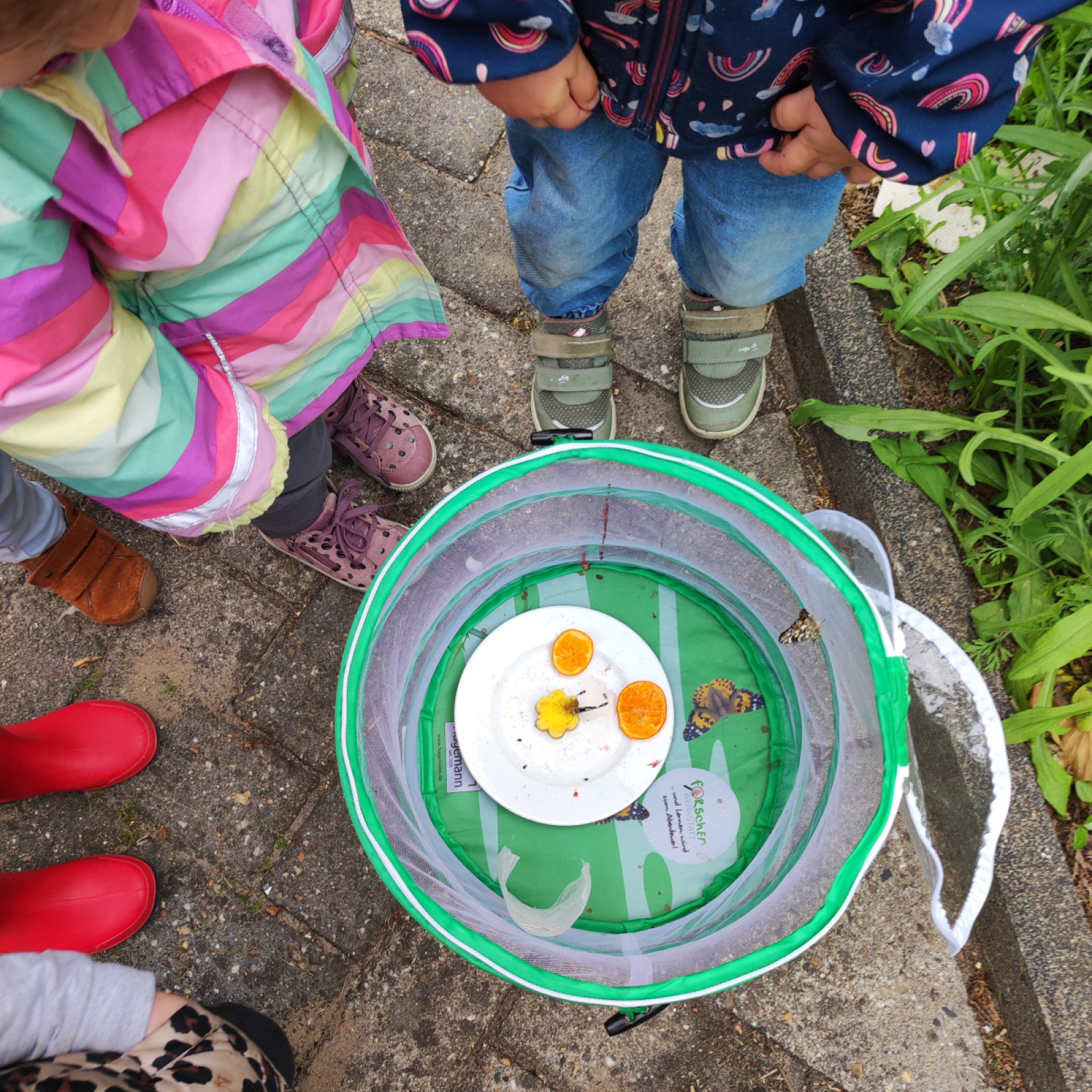 Die Kinder finden es ganz spannend um zu sehen wie die Raupen in Bewegung sind.