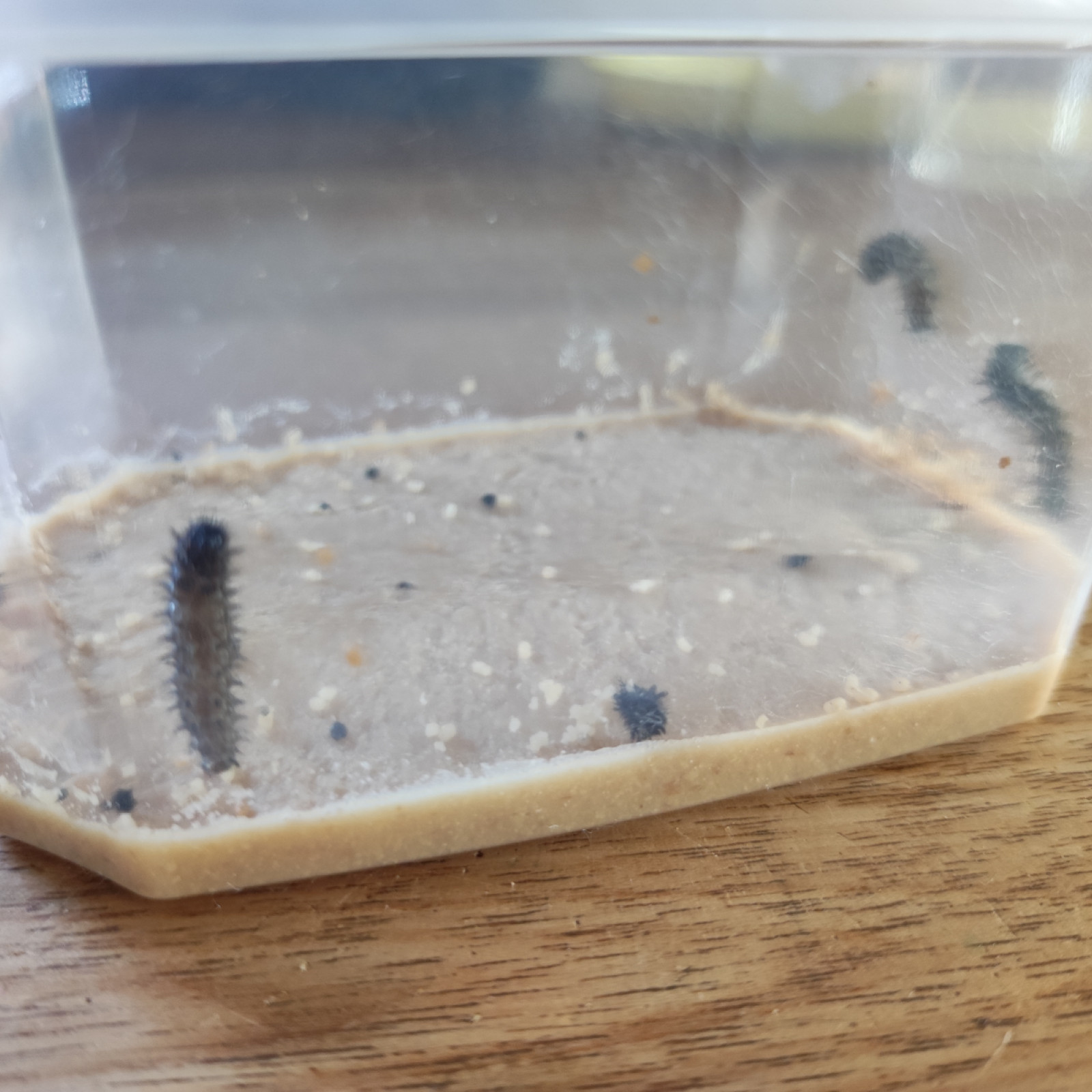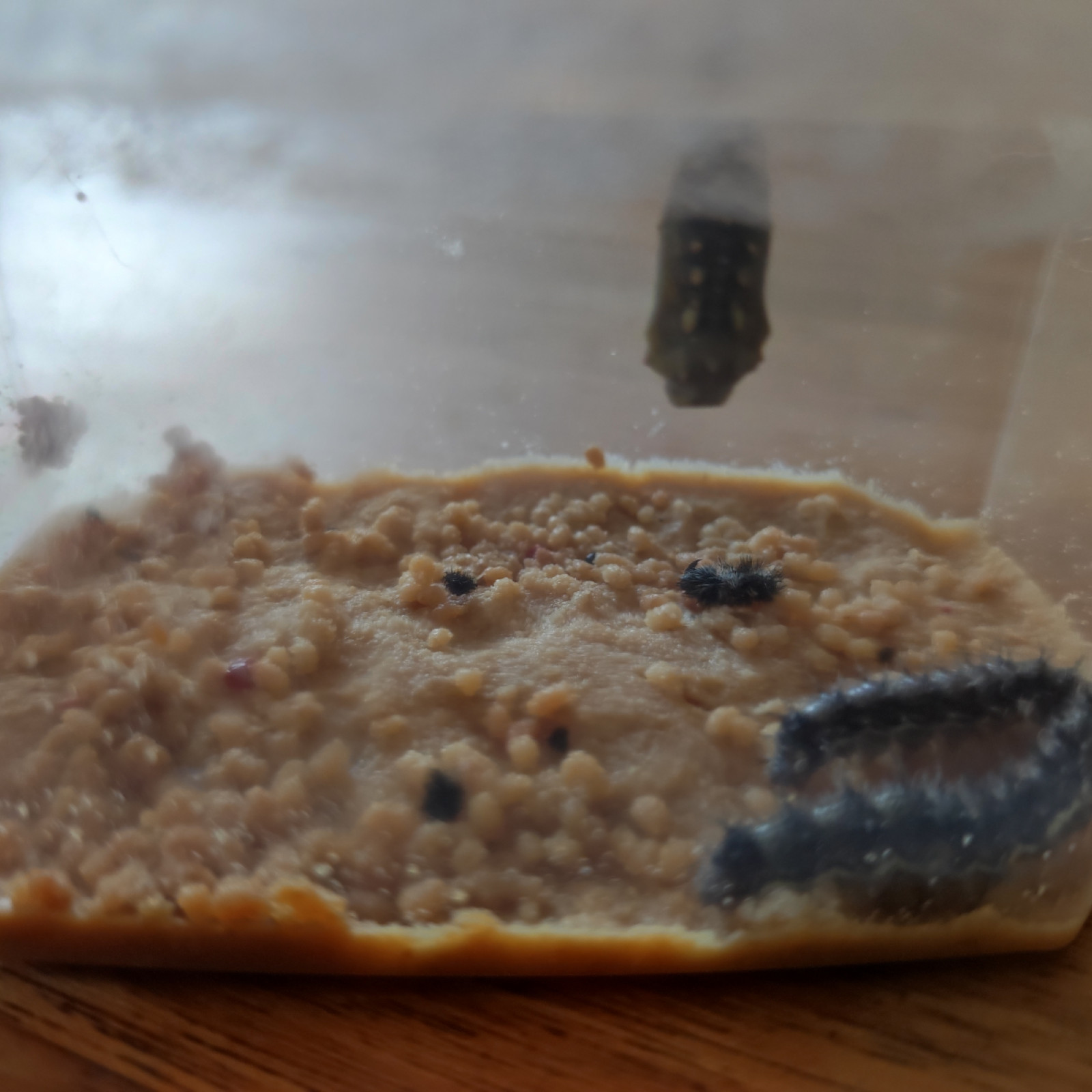 Es sind Raupen bei uns eingezogen! Diese Raupen beobachten wir den kommenden Wochen. Irgendwann verpuppen sie sich und werden wunderschöne Schmetterlinge.