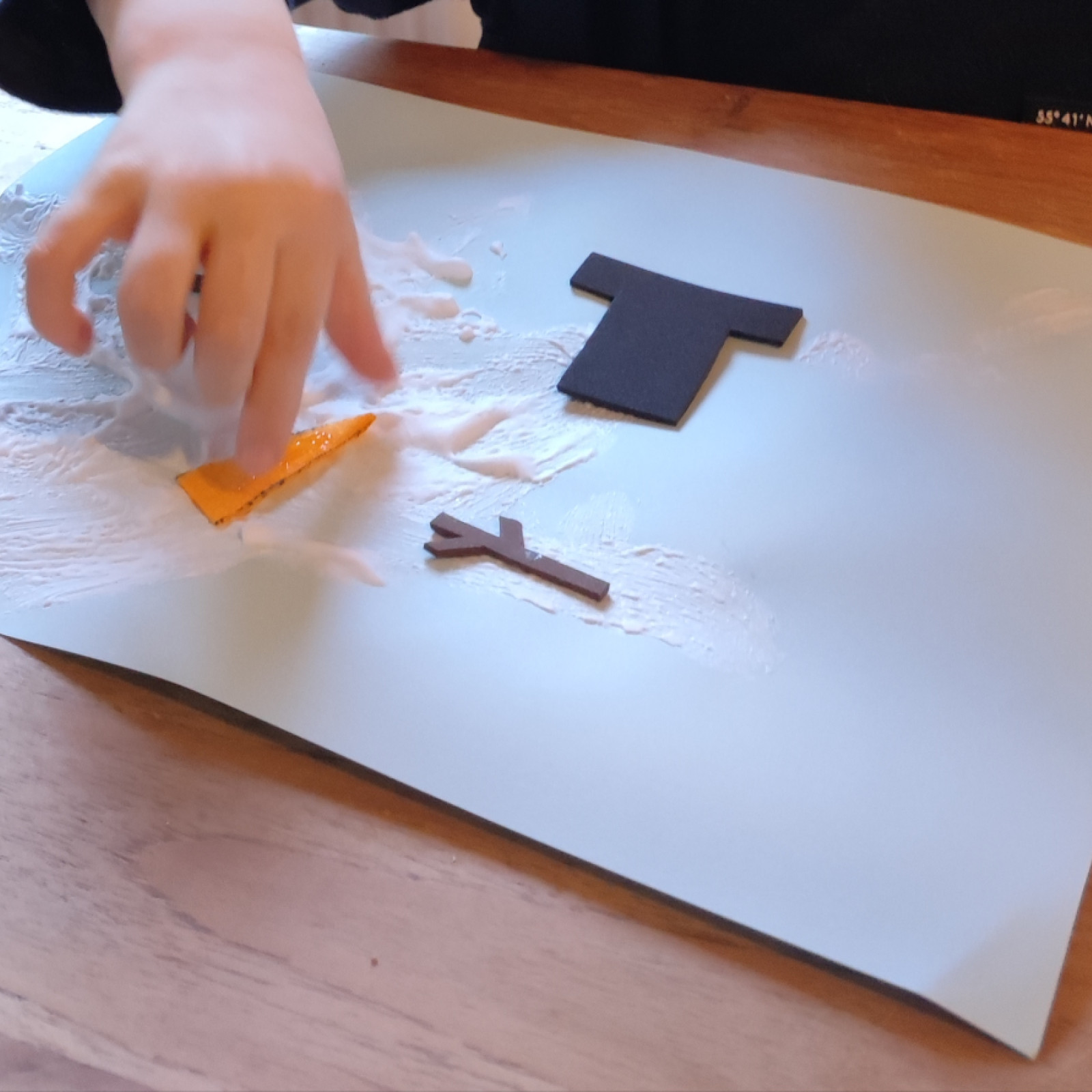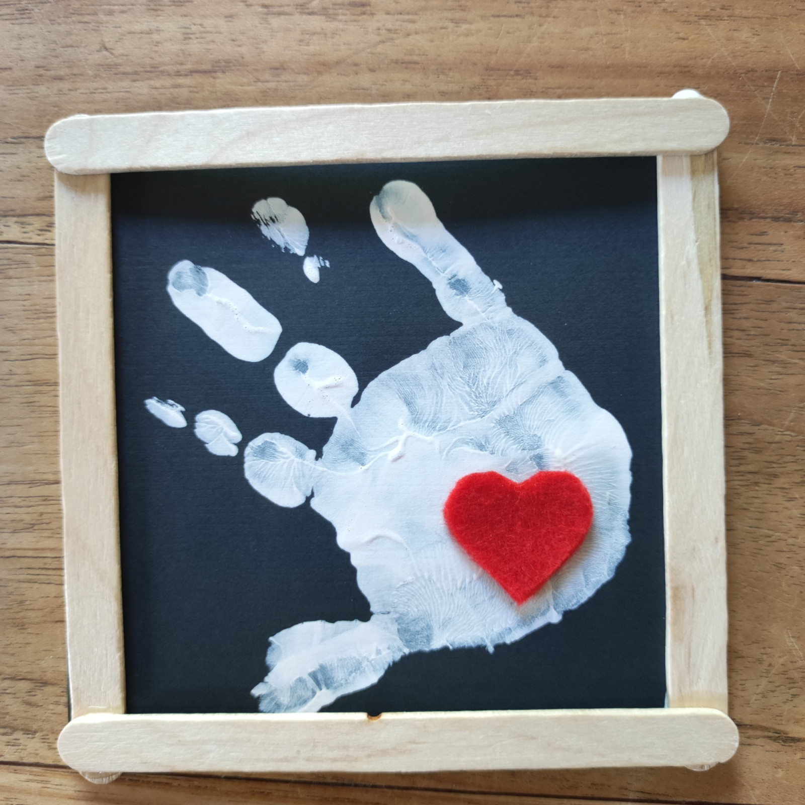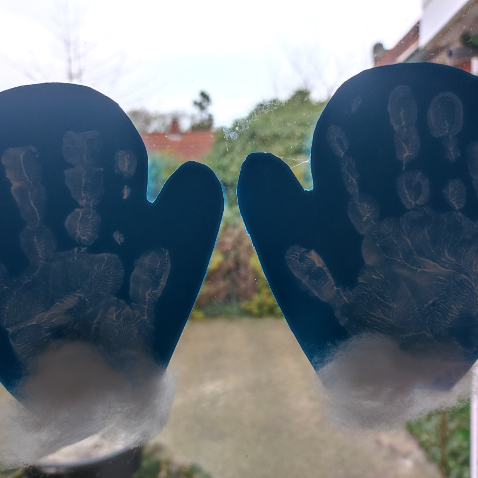 Wir haben gemeinsam Handschuhe mit eigene Handabdruck, gebastelt.