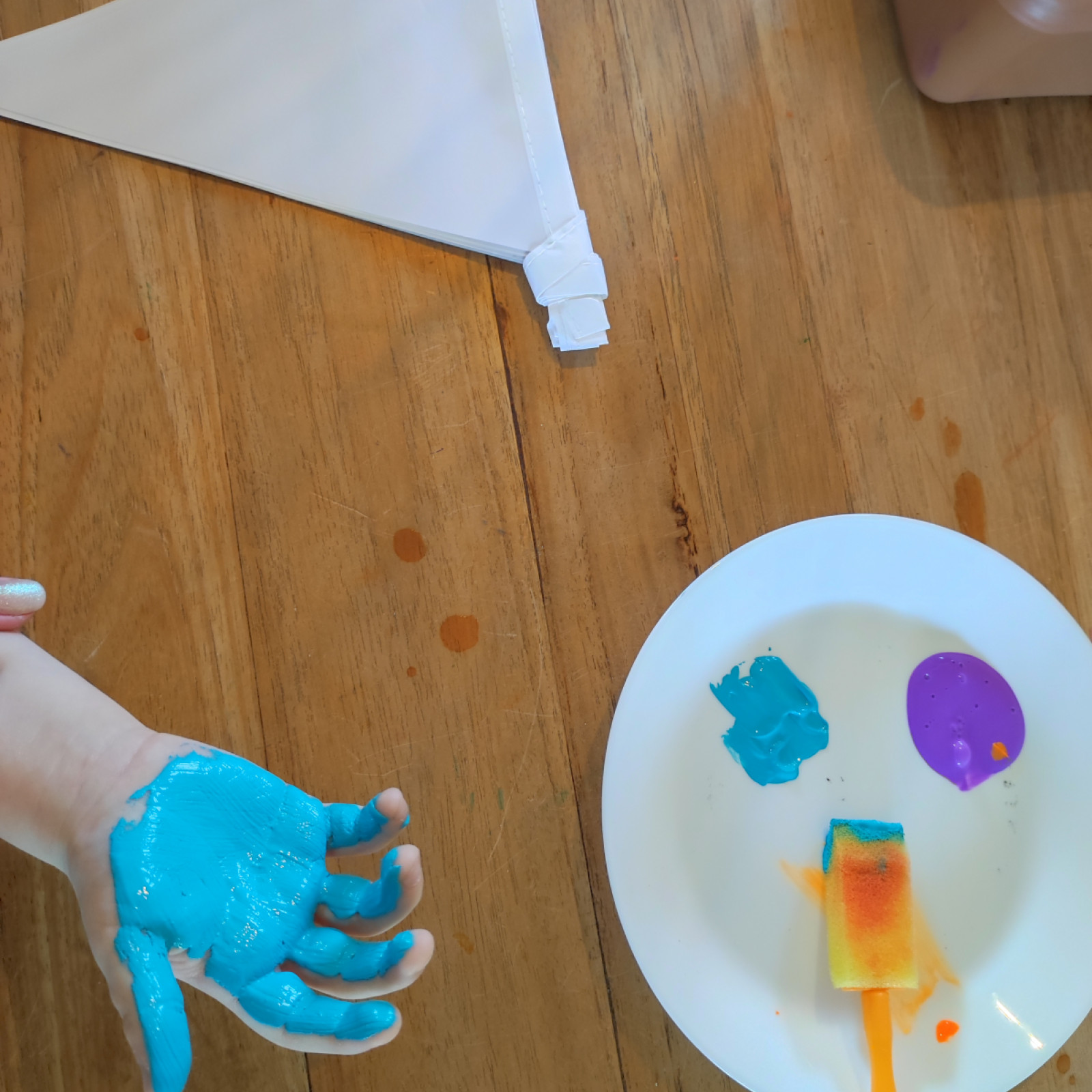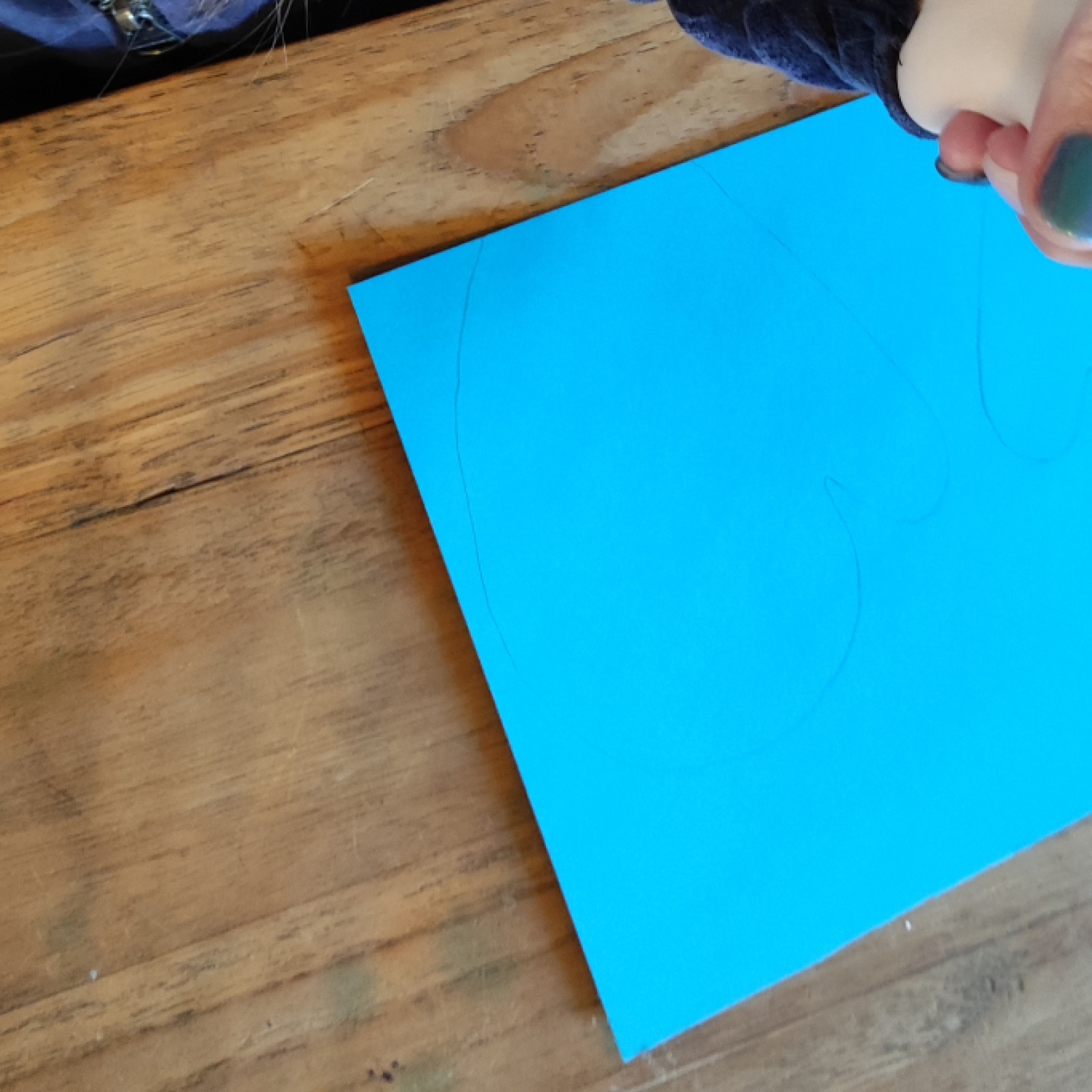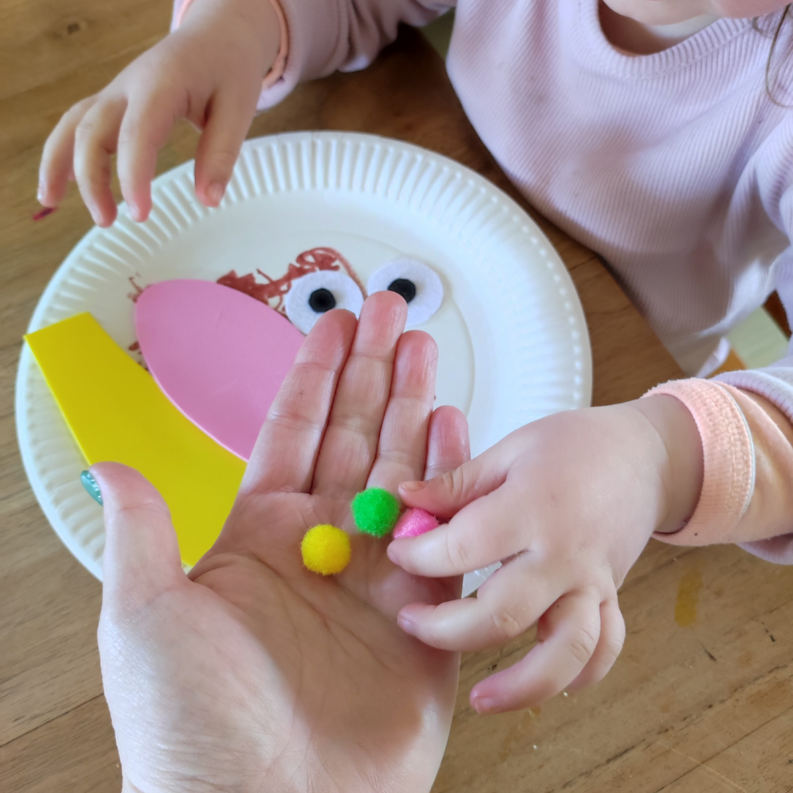 Wir haben gemeinsam Handschuhe mit eigene Handabdruck, gebastelt.