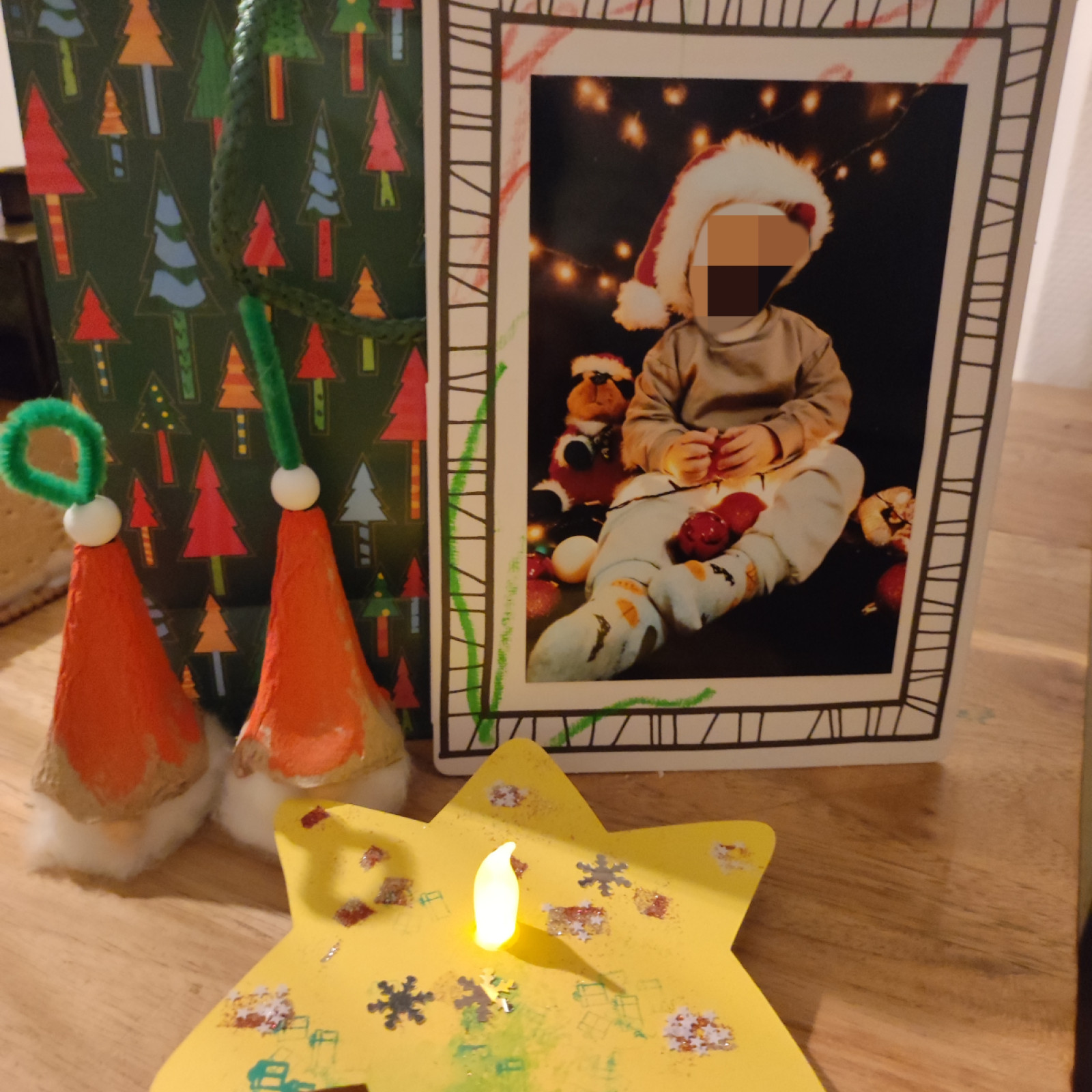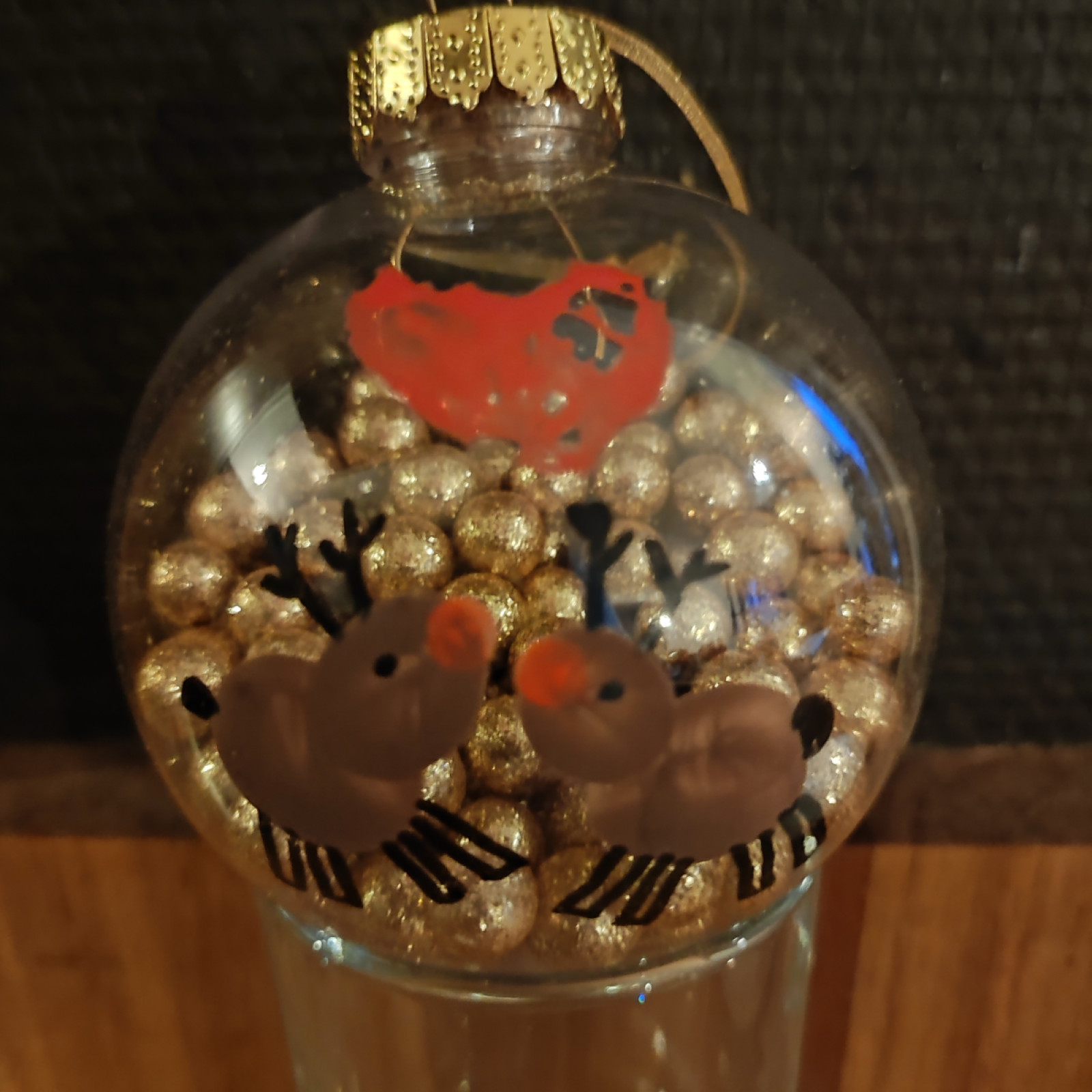 Die Kinder haben fleißig gebastelt um die Weihnachtsgeschenke für ihre Eltern fertig zu bekommen. Dieses Jahr gab es eine Weihnachtskugel mit Fingerabdrùcke von den Kindern. Was ich dann später als Rentiere umgewandelt habe. Und ein Windlicht mit ein Bild vom Tageskind.