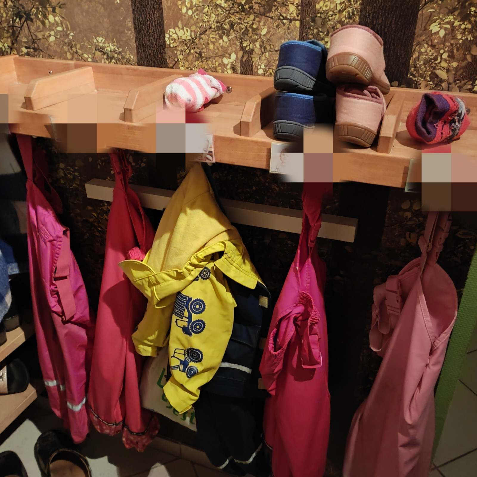 Ich habe eine neue Garderobe! So wie vorher haben die Kinder ihre eigenen Haken. Jetzt ist aber auch genügend Platz für Tasche, buddelhose, Schal, mütze und co.