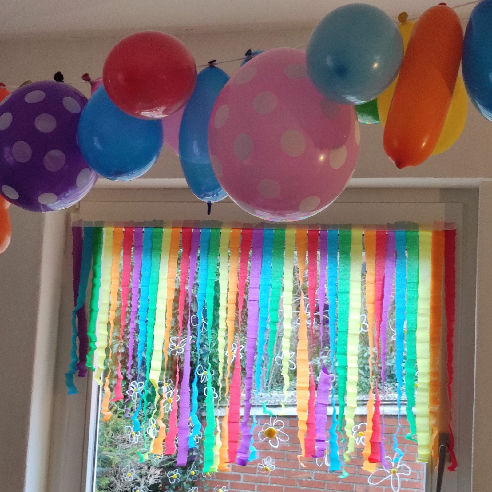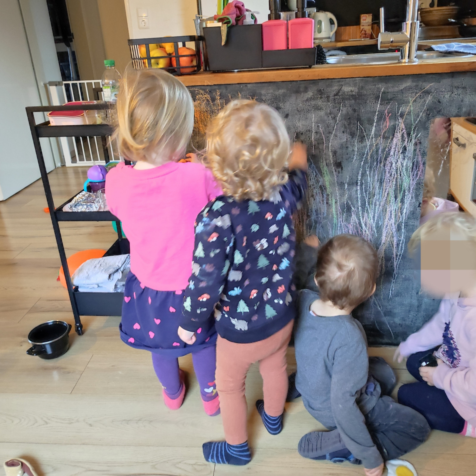 Die Kinder haben wieder ein ganz farbenfrohes 'Bild' gemalt mit Kreide auf unserer Kreidewand.