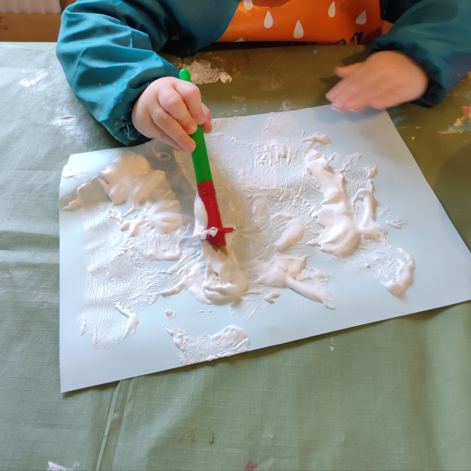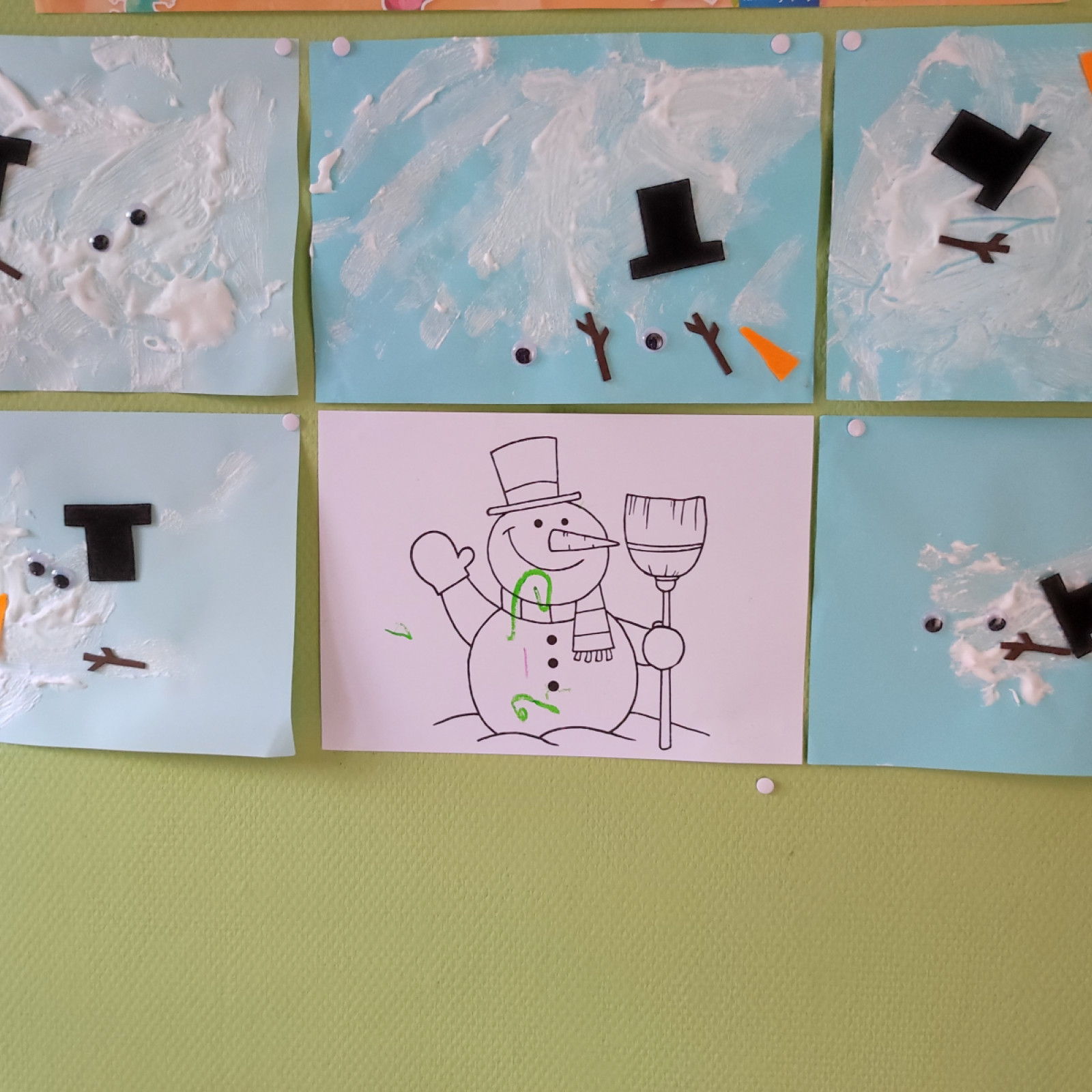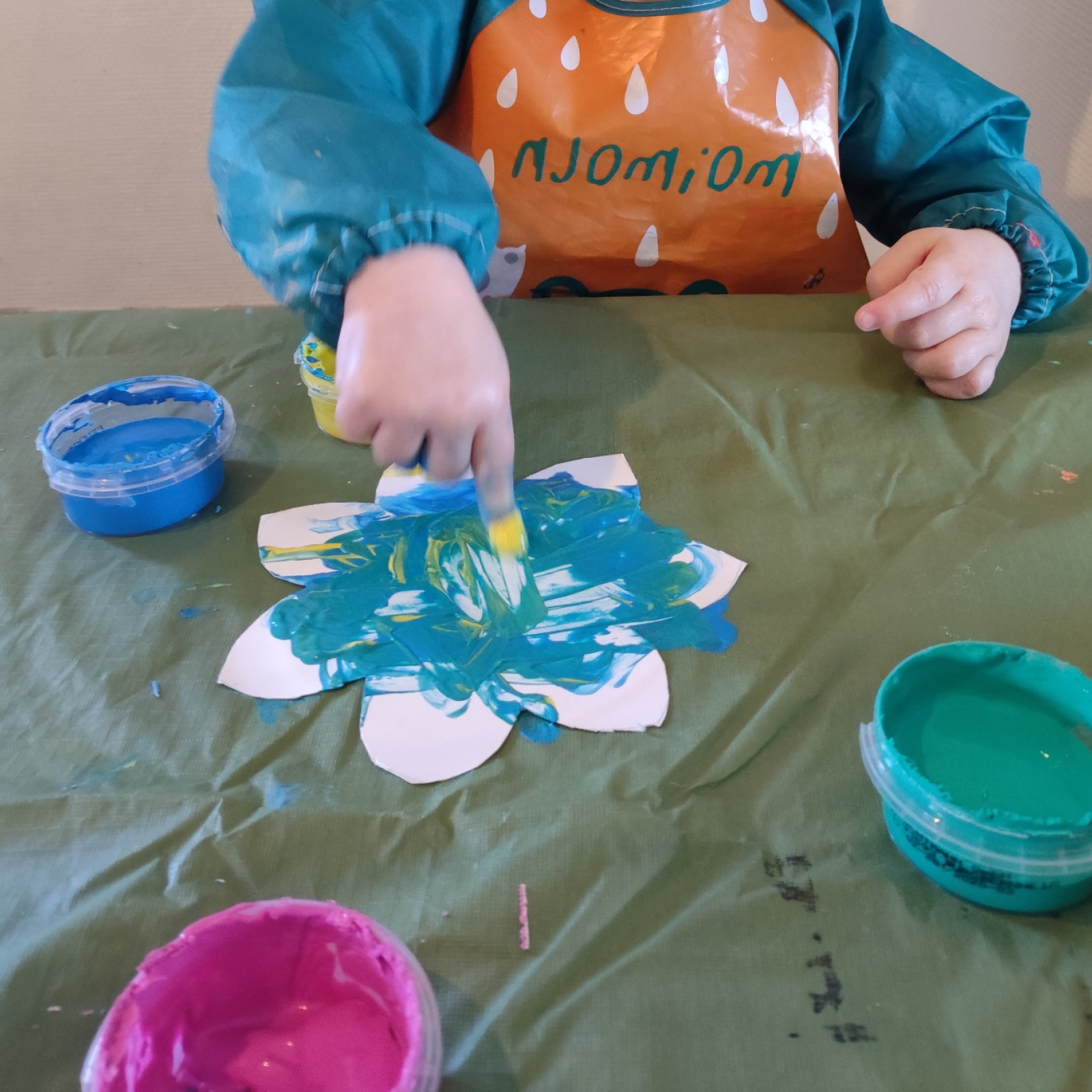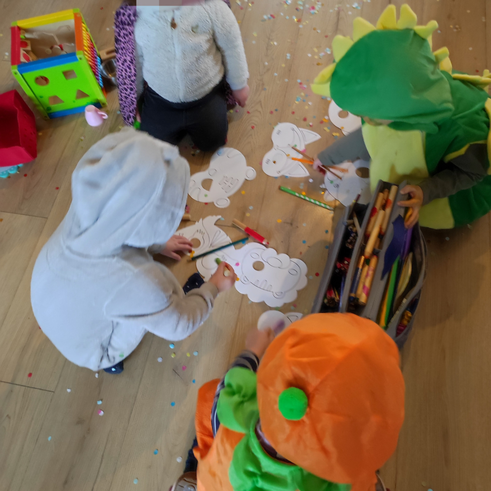 Wir haben angefangen um passend zum Thema Karneval zu basteln. Die Kinder haben erstmal sehr schön gemalt. Jetzt haben wir mit Girlanden angefangen.