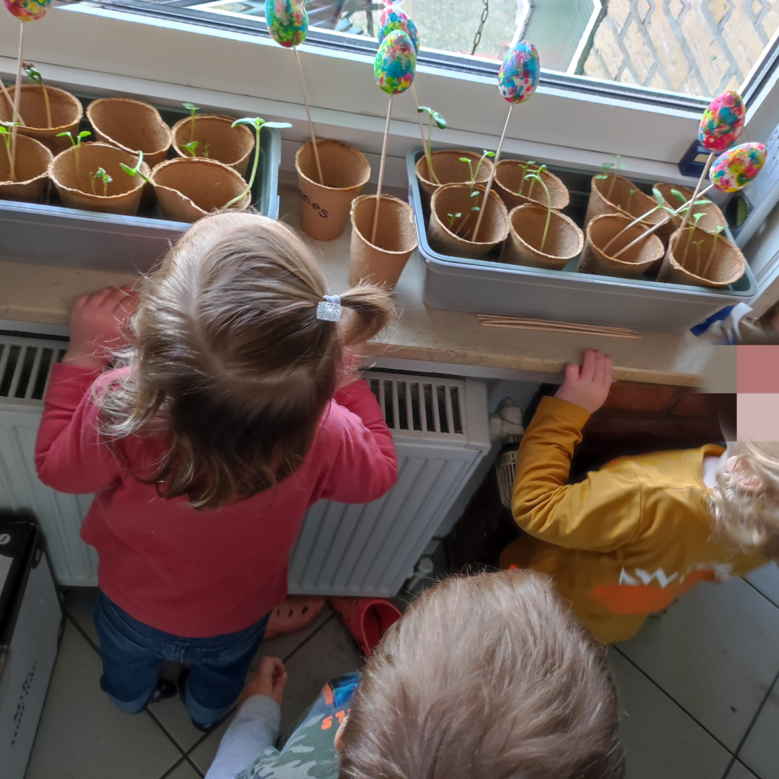Die Pflanzen die die Kinder gepflanzt haben werden sehr gut versorgt und gepflegt, sie wachsen sehr schnell. Nach Ostern werden wir die kleine pflanzen draußen pflanzen sodass die da weiter wachsen können.