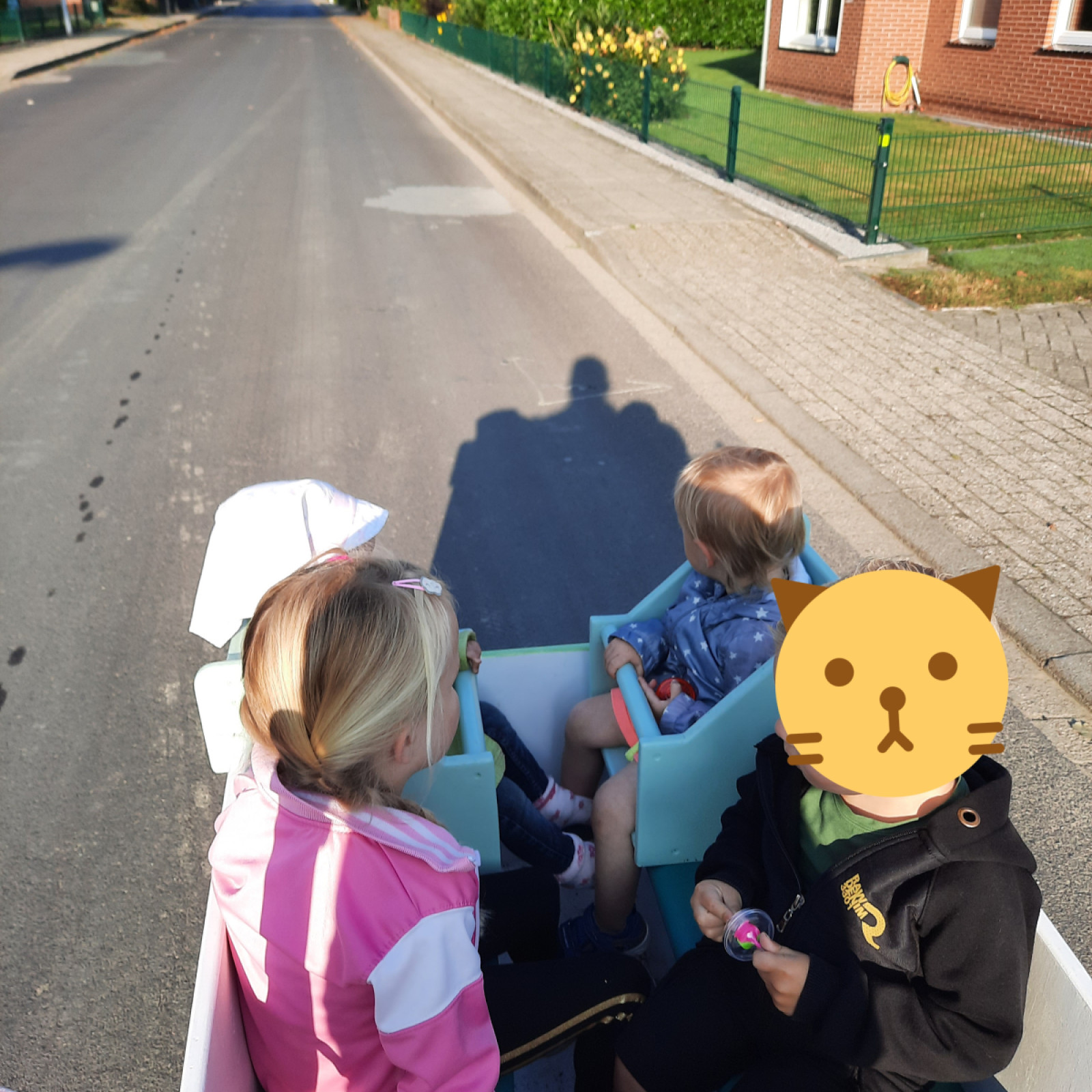Wir verbringen auch Zeit außer Haus und machen Ausflüge. Dies gibt uns Gelegenheit, die frische Luft zu genießen, die Natur und das ,Draußen` zu erleben. So gehen wir in den Garten, spazieren eine Runde, zu den Spielplätzen in der Umgebung oder ein Besuch an den Bücherei. Schon auf dem Weg mit dem Bollerwagen oder den Lastenrad entdecken wir sehr viel, dass wir benennen und über das wir sprechen. Vor Ort sammeln wir manchmal Dinge, die wir dann auch zum Basteln verwenden.
